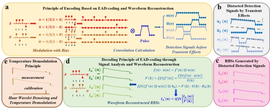 光纤传感技术已成为当今世界令人瞩目、发展迅猛的高新技术之一,它与通信技术、计算机技术构成信息产业的三大支柱,是当代科学技术发展的一个重要标志。拉曼分布式光纤传感技术因具备快速测量、结构简单及固有温度敏感性等优势,广泛应用于交通、能源和国防领域。但传统技术受限于拉曼散射信号强度低、信噪比不足,且存在传感距离与空间分辨率难以兼顾的技术瓶颈,其长距离传感应用面临巨大挑战。针对上述技术瓶颈,团队为此展开深入研究。该研究提出一种增强型抗干扰编码调制与波形重构技术,通过三项协同调制方案克服了传统方案中信噪比不足、传感距离与空间分辨率难以同时提升的技术瓶颈。该技术首先采用增强型抗干扰脉冲编码技术,在有效抑制受激拉曼散射的基础上增加入射光通量,基于编码信号与未编码噪声的特征可分离性,提升传感信号信噪比;同时利用/频域转换波形重构方法,抑制掺铒光纤放大器的瞬态效应,恢复失真拉曼散射信号自相关性,从而提升系统测量精度;最后利用Haar小波多尺度去噪方法,针对性滤除系统残留噪声,进一步优化系统信噪比。实验结果显示,该研究在70.0 km传感距离下,实现1.58 m的空间分辨率,同时保持0.91 ℃的温度测量精度。