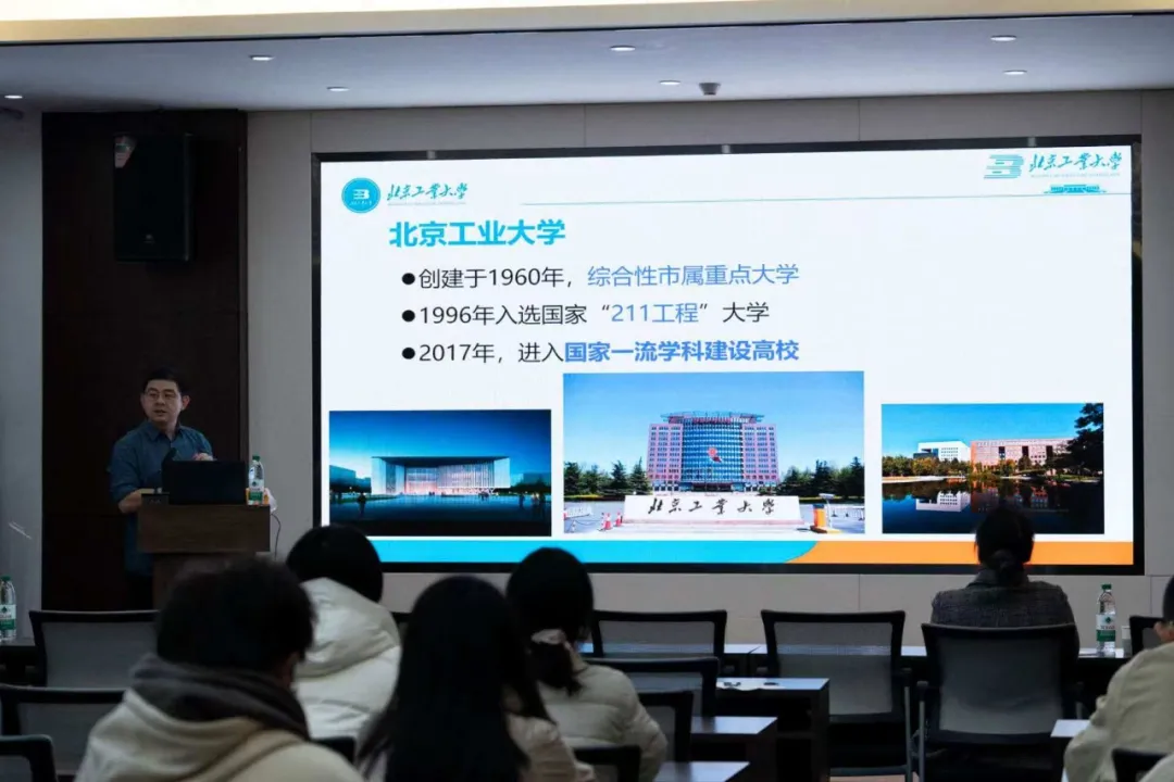 11月24日晚,北京工业大学来访我校开展交流宣讲会,旨在加强两校间的合作,为学生提供更多升学选择。宣讲会于物电南楼304举办,由北京工业大学物电学院激光工程研究院副院长侯玉斌主讲。