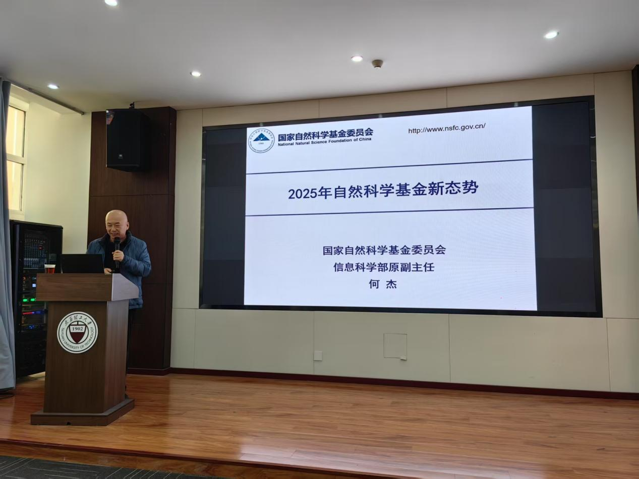 304永利集团于1月21日上午10:00在学院304会议室举办国家基金申报研修班第三场讲座。本期研修班特邀国家自然科学基金委员会信息科学部原副主任何杰研究员作专题辅导。会议包括两个阶段:1. “2025年自然科学基金新态势”报告;2. 对拟申报人才项目青年教师面对面指导。我校电子信息领域相关学院教师参加交流。报告由张明江院长主持。