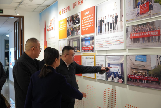 在学院相关负责人陪同下,东宏股份一行首先抵达明向校区科技楼6层,参观了混沌激光与光纤传感重点实验室,详细听取了该实验室在光纤传感技术与系统集成方面的研究进展与应用前景。随后,嘉宾前往物电南楼,依次走访光学精密测量、极端环境智能感知与应用、光纤激光技术及应用等重点实验室及党建育人文化长廊,深入了解学院在党建工作,光电技术、智能感知、激光工程等领域的科研积累与实验能力。参观过程中,双方就技术细节、产业应用等进行了初步交流。