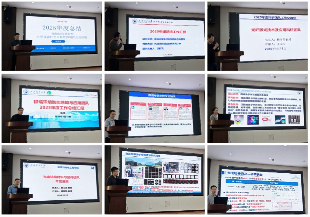 学院共18个科研团队各派代表进行了年终工作总结汇报,主要集中在团队介绍、科研进展、人才引进、学生培养、不足及展望等方面。介绍了团队年度核心研究成果,分享了在项目申报、高端人才引进、研究生培养中的实践经验,同时坦诚剖析了当前在科研方向聚焦、跨团队协作等方面存在的不足,并提出了2026年的科研规划与发展目标。